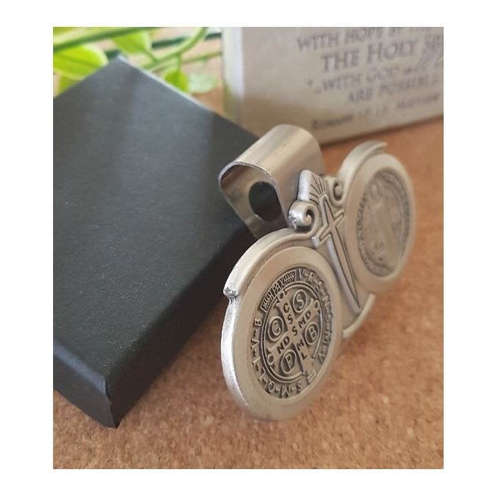 Car Visor St Benedict/Saint Benedict Car Clip/Patron Saint Automobile Clip/Religious Travel Accessories/Auto Rosary/Pewter Medal For Car