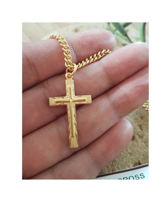 Gold Sterling Silver Cross Medal, Classy Gold Cross Pendant, Men Cross Necklace, Confirmation and Graduation Jewelry, Big Cross Pendant