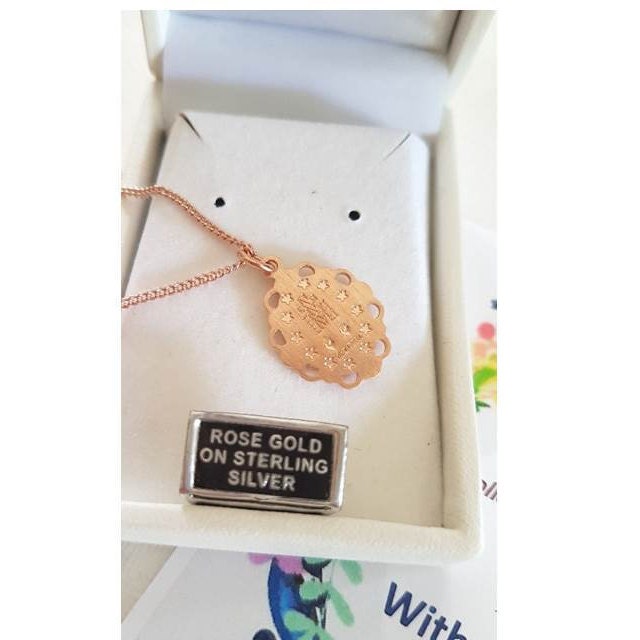 Rose Gold Sterling Miraculous Medal pendant/Rose Gold and White Mother Mary Silver Medal/Virgin Mary Rose Gold Sterling Silver