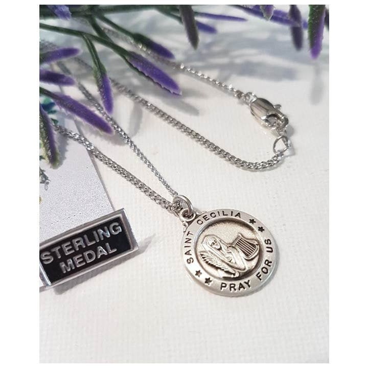 St Cecilia Sterling Medal/Sterling Silver Saint Cecilia Pendant/Silver St Cecil Patron Saint Of Musicians and Choir/Catholic Female Saints