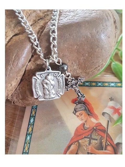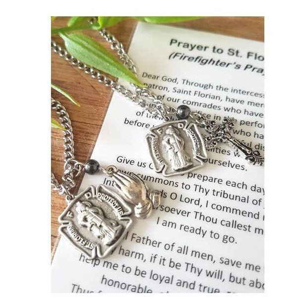 St Florian Medal with Prayer,Saint Florian Firefighters Saint,Patron Saint Pendant with Charm, Praying Hands and Crucifix,Saints Medal